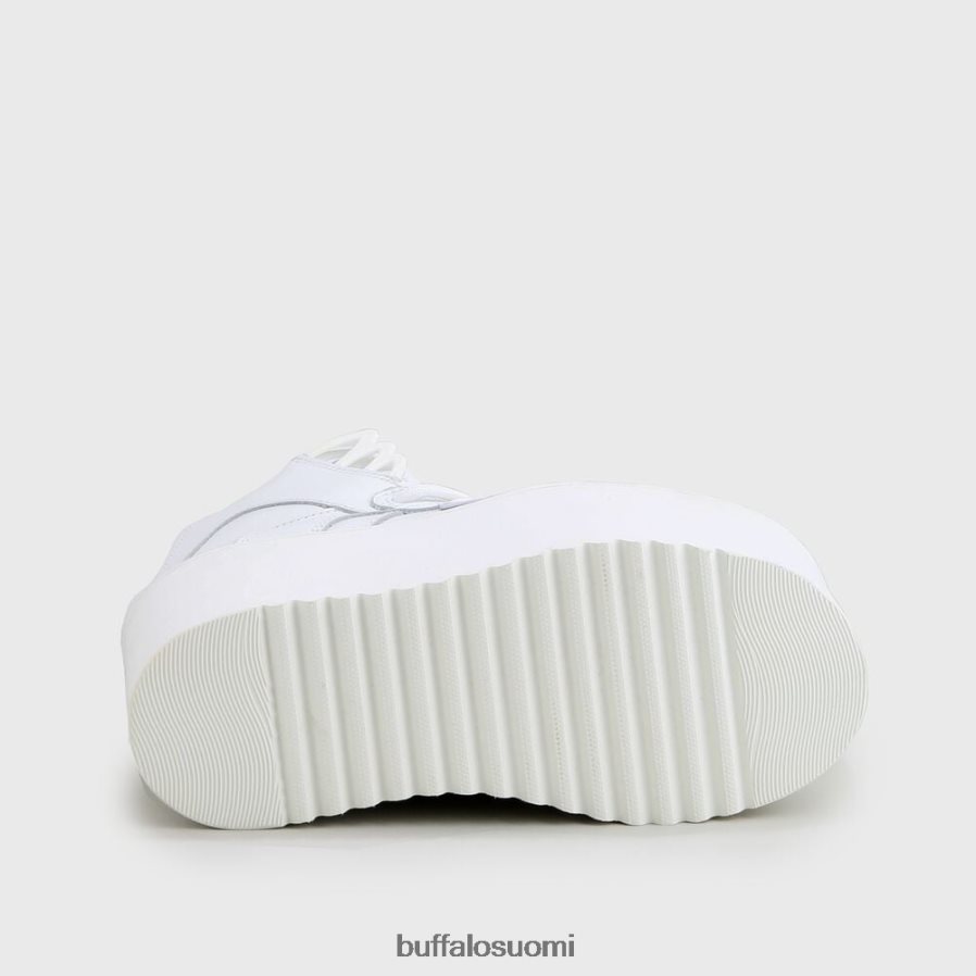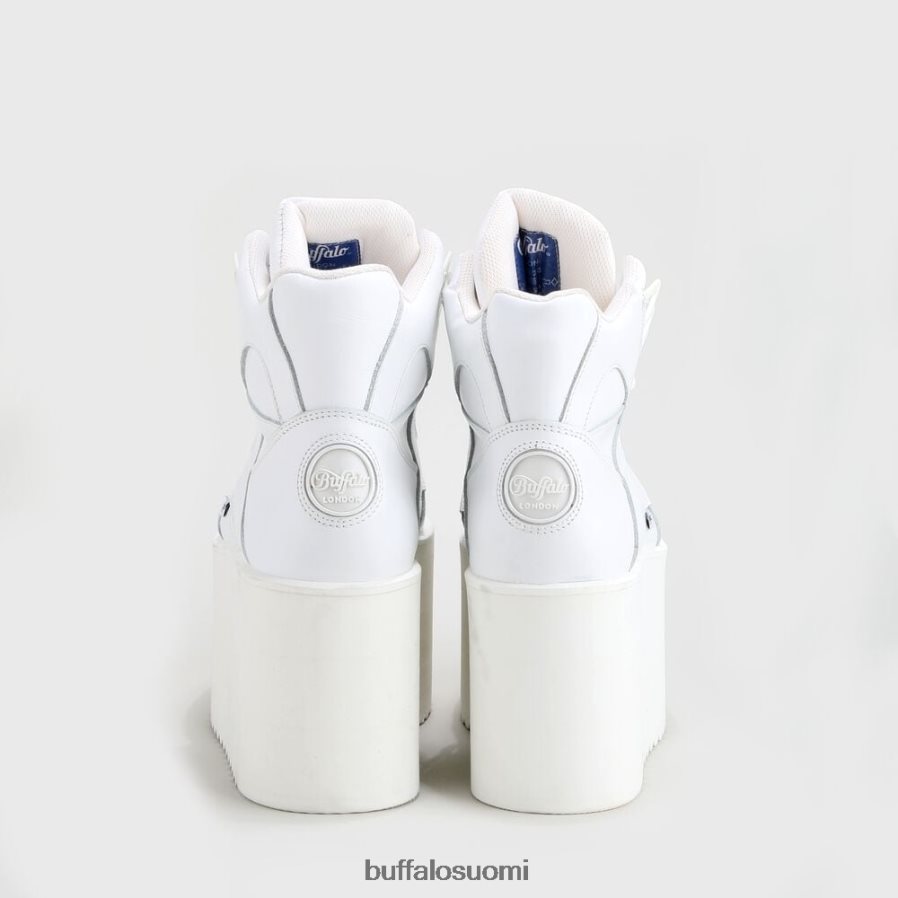 erinomainen tyyli! buffalo-klassikoiden suuren herätyksen jälkeen seuraava ikoni on jo sukupolven hulinaa:nousevat tornit ovat palanneet ja takaavat sinulle 90-luvun äärimmäisen tyylin. korkeatasoinen versio onrising towers highlenkkari, jossa on korkealaatuinen valkoinen nappanahkapäällinen, tyypillinen 10 cm korkea alustapohja ja pehmeä pehmustettu sisäänkäynti.