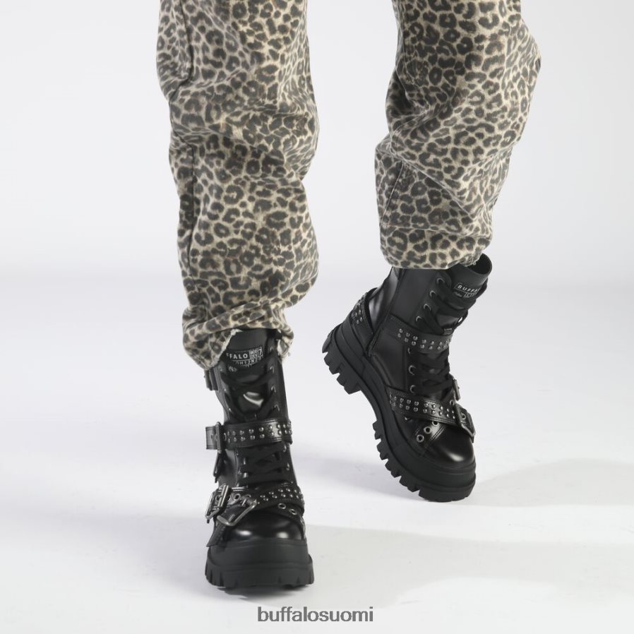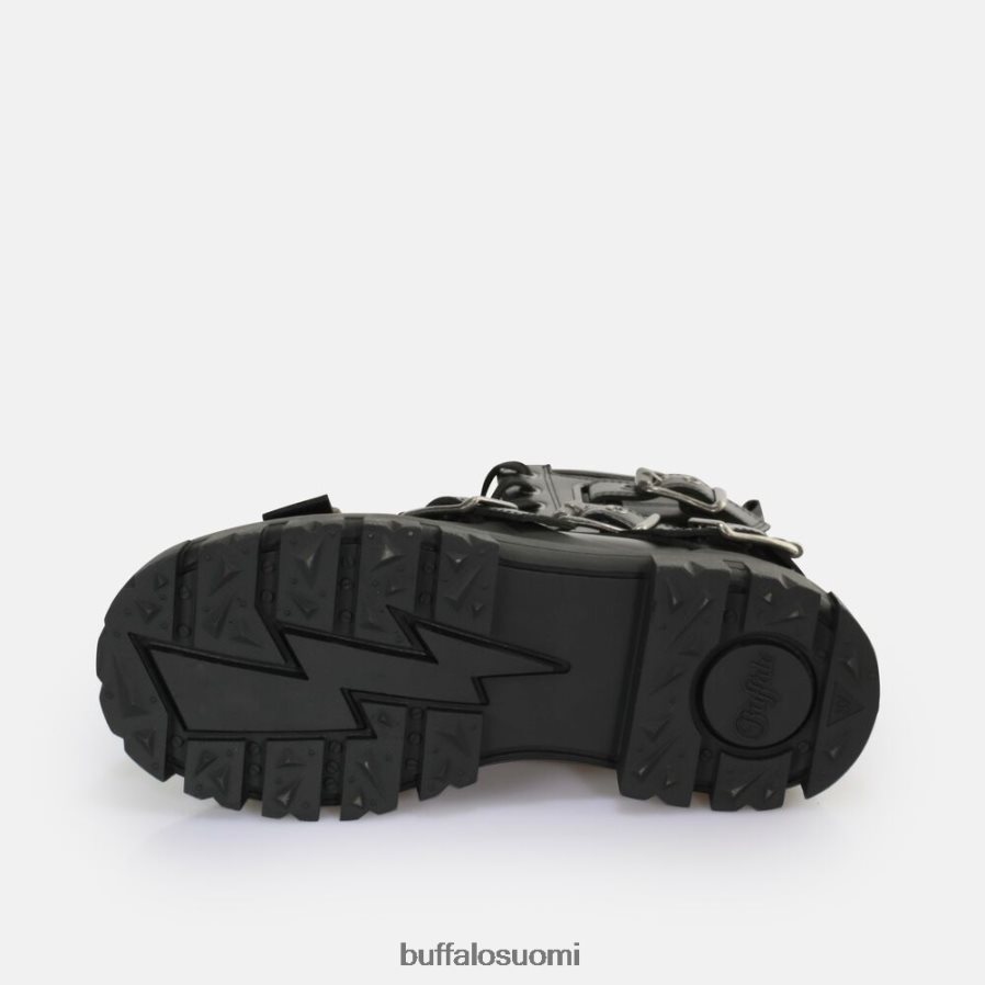 asuuko sisälläsi villi tyttö vegaaninen aspha-solki keskinilkkasaappaaton tappava kenkä. suuret soljet koristavat saappaa ja antavat sille äärimmäisen pyöräilijän tyylin. heiluta joka kerrosta ja anna muille fashionistalle juosta rahoilleen. irrotettava pohja, joka on valmistettumuistivaahtomuovista, tarjoaa tarvittavan mukavuuden. muotoile saappaat mustilla housuilla tai tyttömäisellä mekolla.