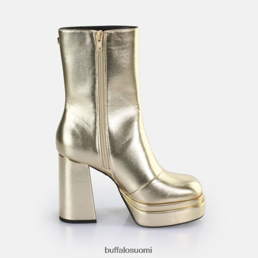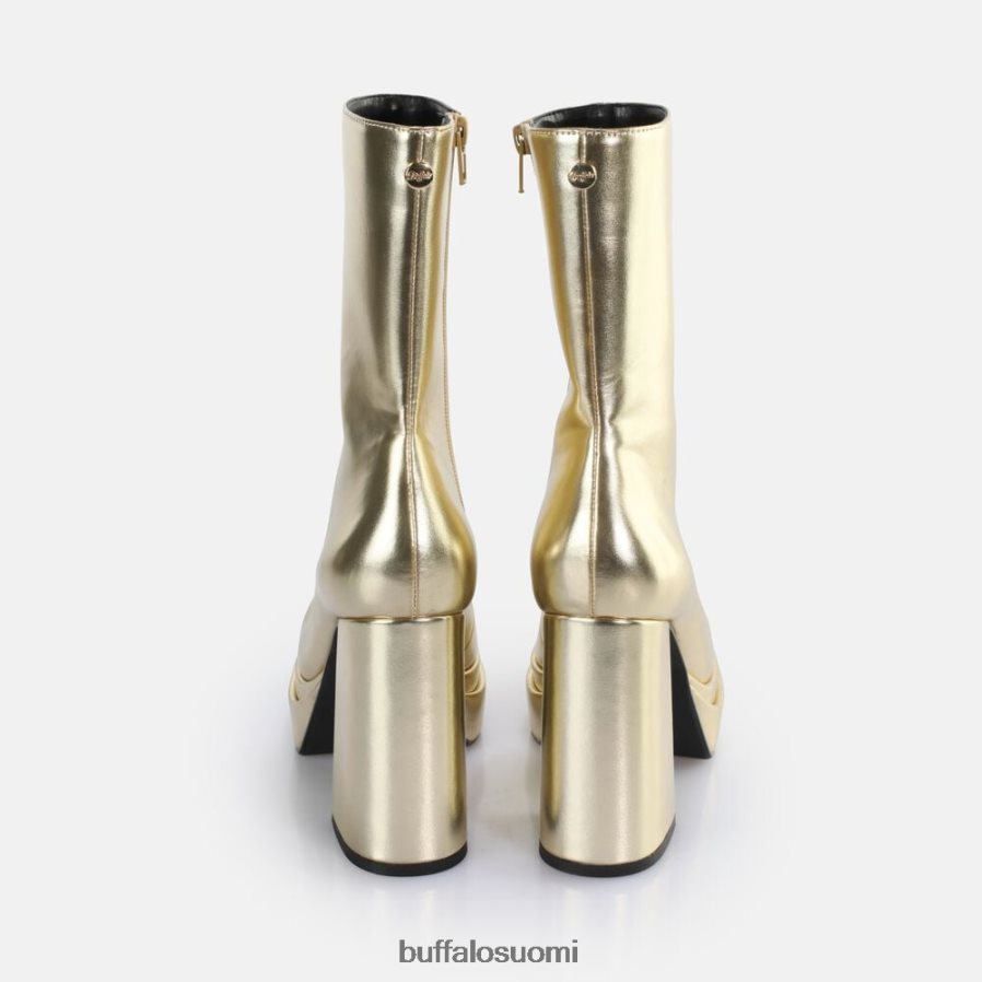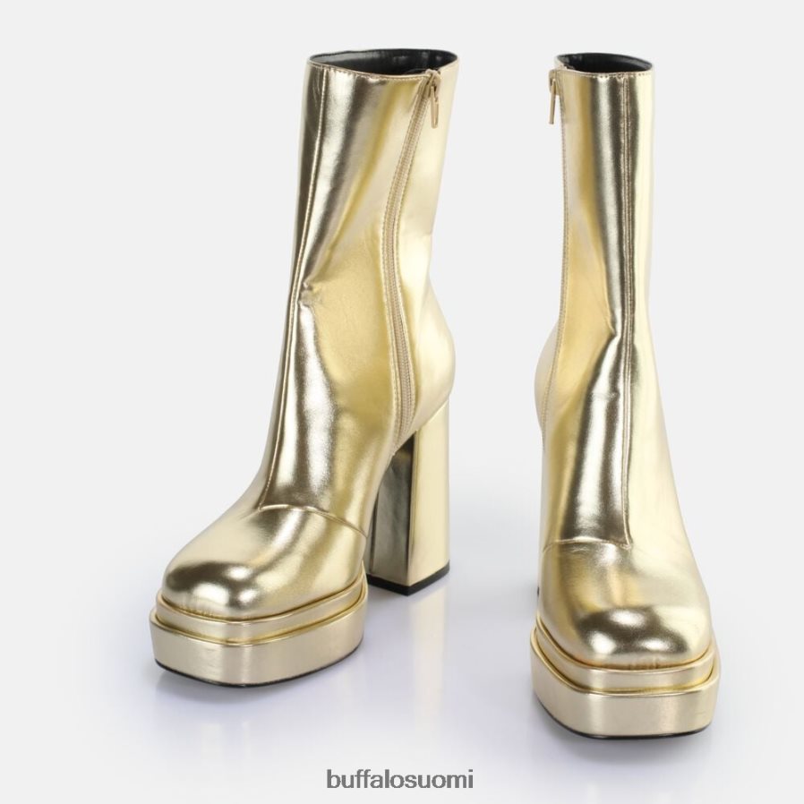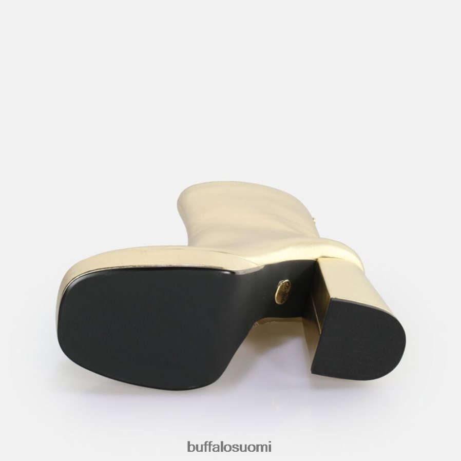 Anna asuillesi viileä 70-luvun tunnelma vegaanisilla vetoketjullisilla saappailla. erittäin korkea korkokenkä ja miellyttävä alustan etuosa antavat sinun kellua kadulla kuin kuningatar. puhdas muotoilu jännittävästä kullasta herättää myös taatusti huomion. korkean varren ja mukavanmemory foam -pohjallisen ansiosta jokaisesta kävelystä tulee kohokohta.