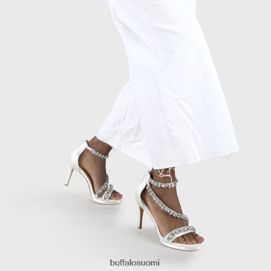 uskalla ottaa seuraava askel tyylikkäästiannasandaalin kanssa. norsunluun värinen satiinija helmi- ja kristallinauhaiset olkaimet saavat sinut kävelemään tyylikkäästi käytävää pitkin, kun taasmukava kantapään korkeus kevyellä alustalla strong>sallii tanssimisen koko yön.